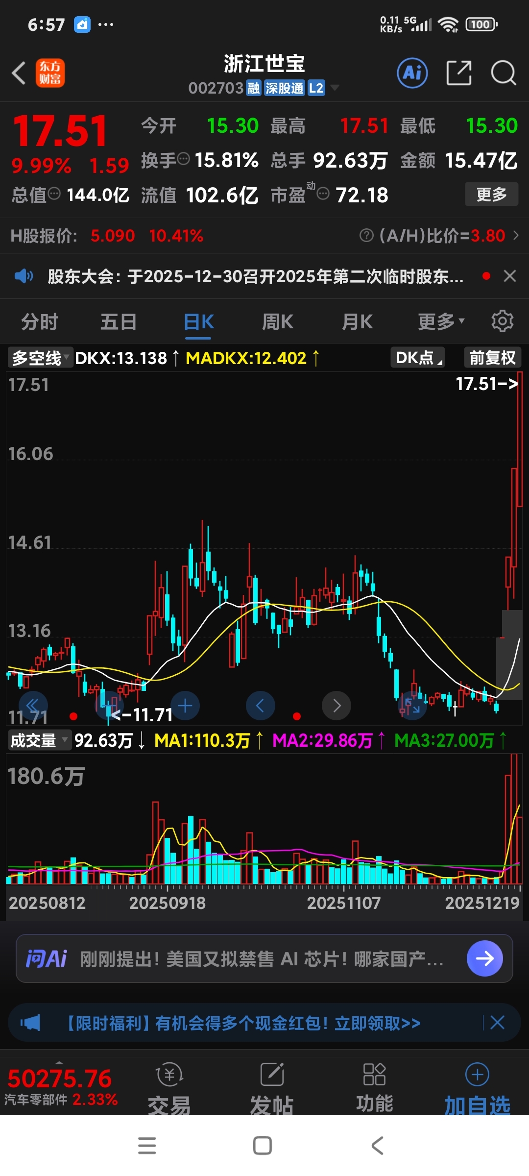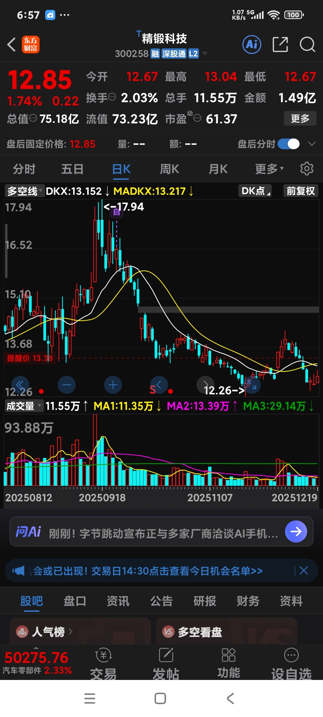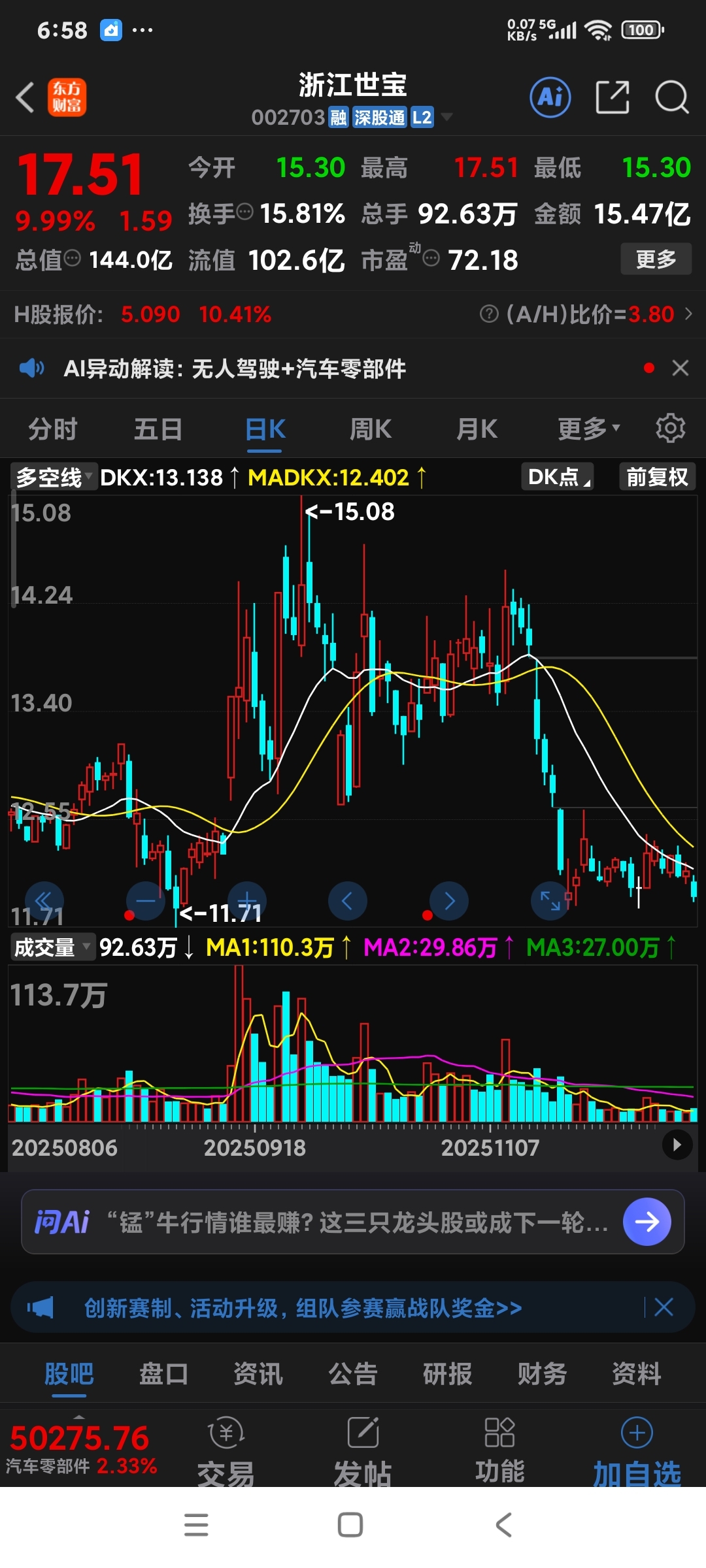$精锻科技(SZ300258)$ 浙江股比江苏股就是牛!看看浙江世宝没涨前走势也很恶心,没涨前也是70多点市值、也是汽车零部件板块,可浙江世宝在新年到来前发红包了。精锻科技现在也是70多市值,走势也很恶心。它在没涨前也是骂声一片,空狗托猖狂。空狗们,你们怎么不去追平潭发展?
