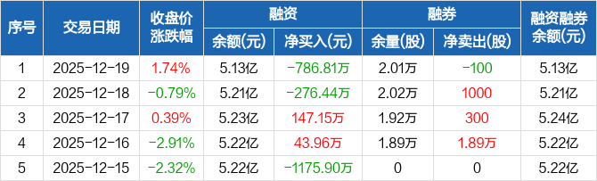 精锻科技:融资净偿还786.81万元,融资余额5.13亿元(12-19)