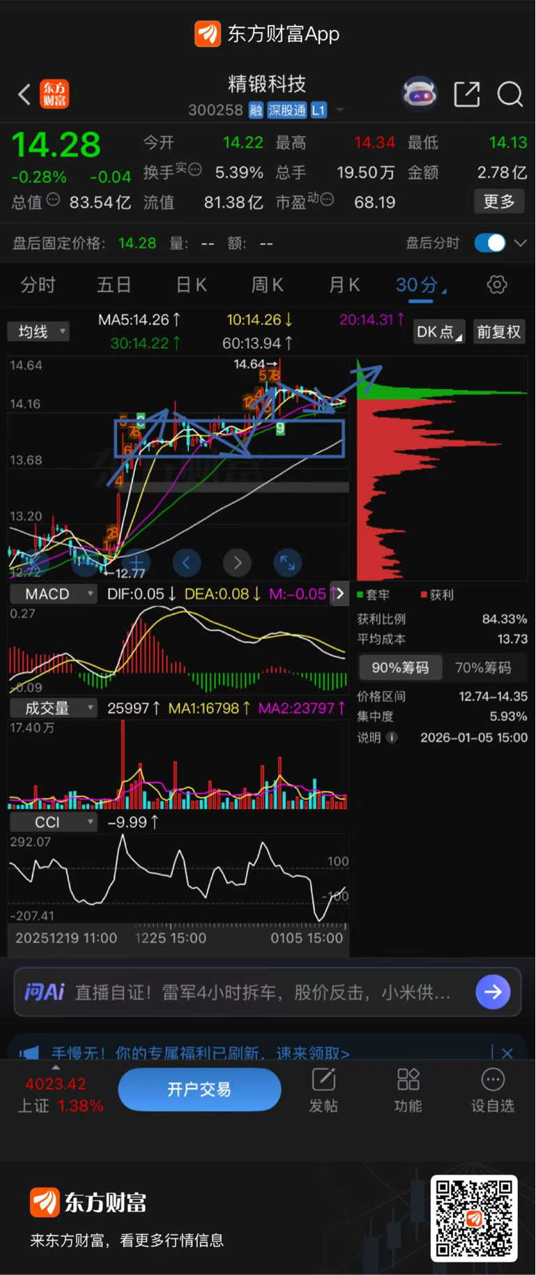 $精锻科技(SZ300258)$ 回踩不破中枢上沿看继续往上走,目前走势健康