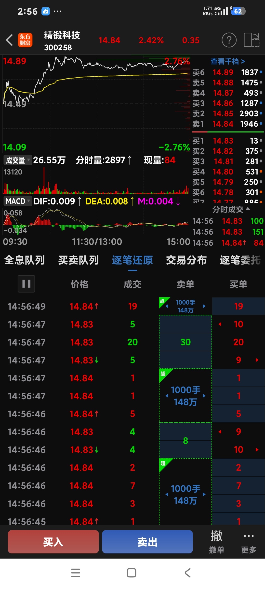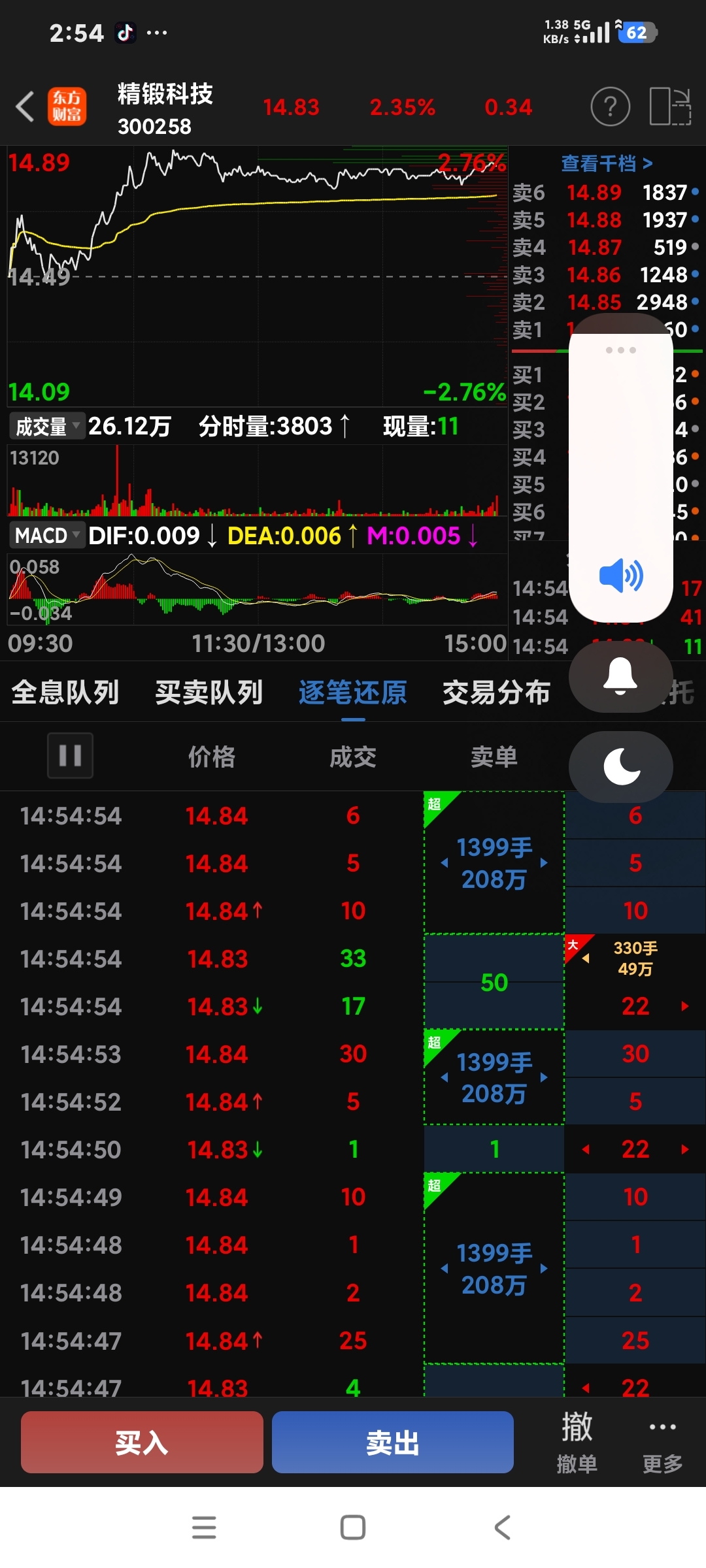 $精锻科技(SZ300258)$ NND!都是大单在抛!