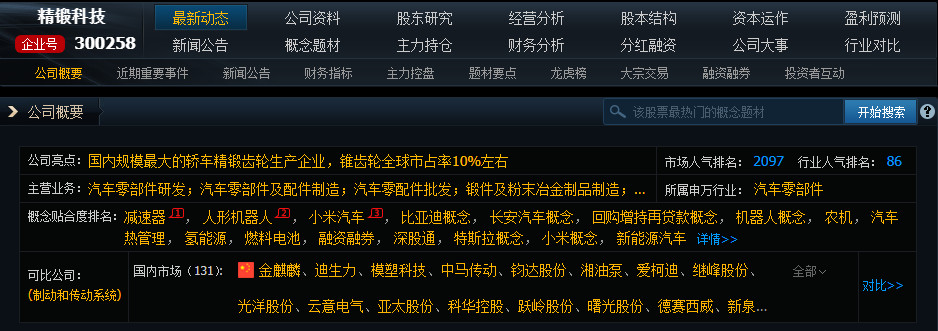 这些都是吹出来的,在汽车零部件板块及股票都涨飞了,普遍市值都翻倍了,精锻科技却没