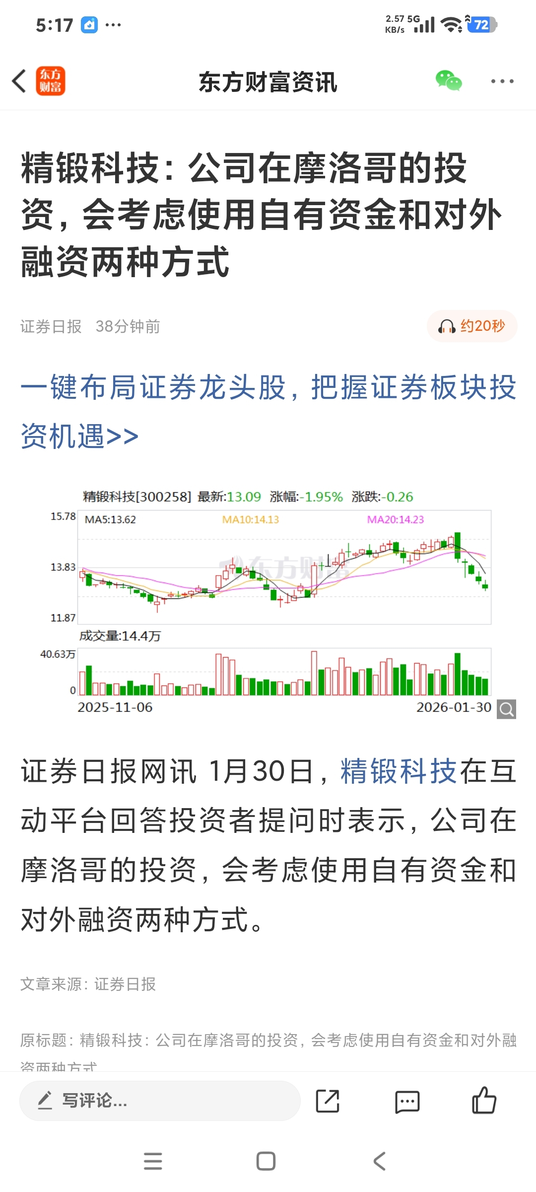 $精锻科技(SZ300258)$ 不回报投资者,还要融资?中短线已成死股了。净资产8.10元还想着融资,有公积金与未分配利润还要融资?指数涨了三个月,精锻科技三个月反而是跌的。