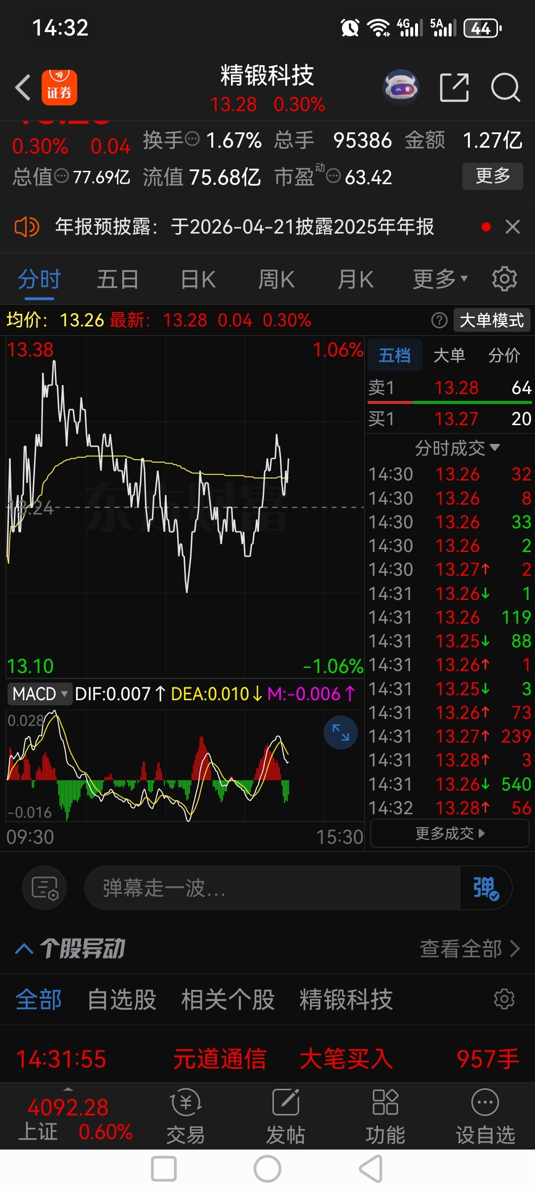 $精锻科技(SZ300258)$ 这拉圾玩意都是天天资金大流出,公司是不是出出问题了