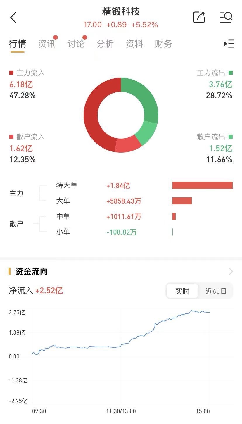 $精锻科技(SZ300258)$ 香港那边的数据是大资金流入,未来可期