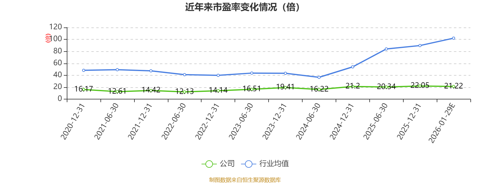 以本次披露业绩预告均值计算,公司近年市盈率(TTM)图如下所示: