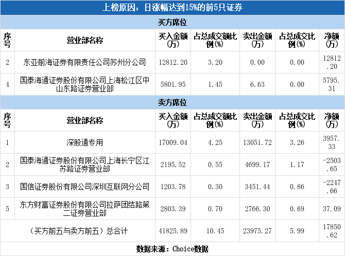 深股通现身龙虎榜,新莱应材涨停(10-10)