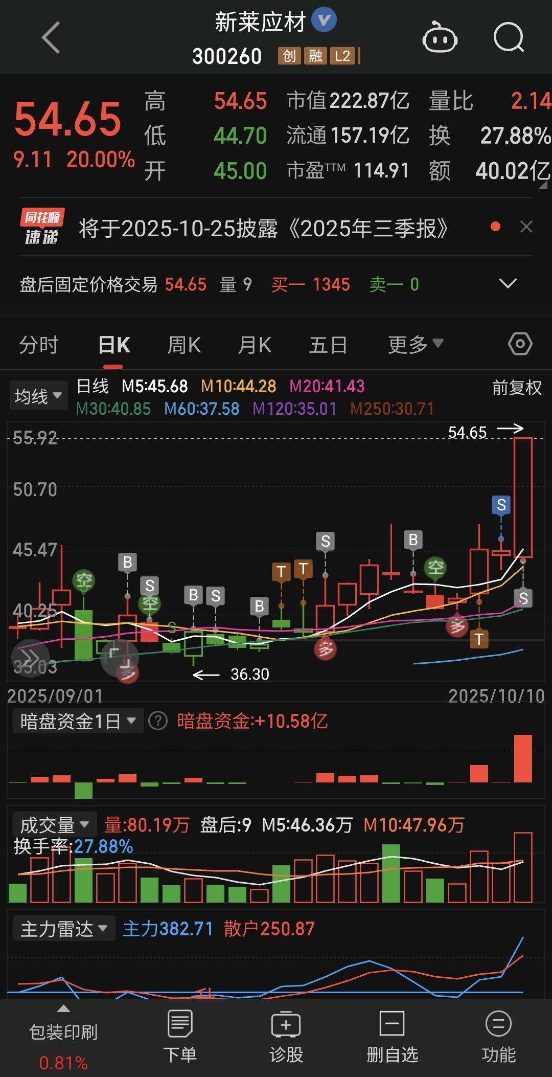 $新莱应材(SZ300260)$ 昨天卖了,天意啊。