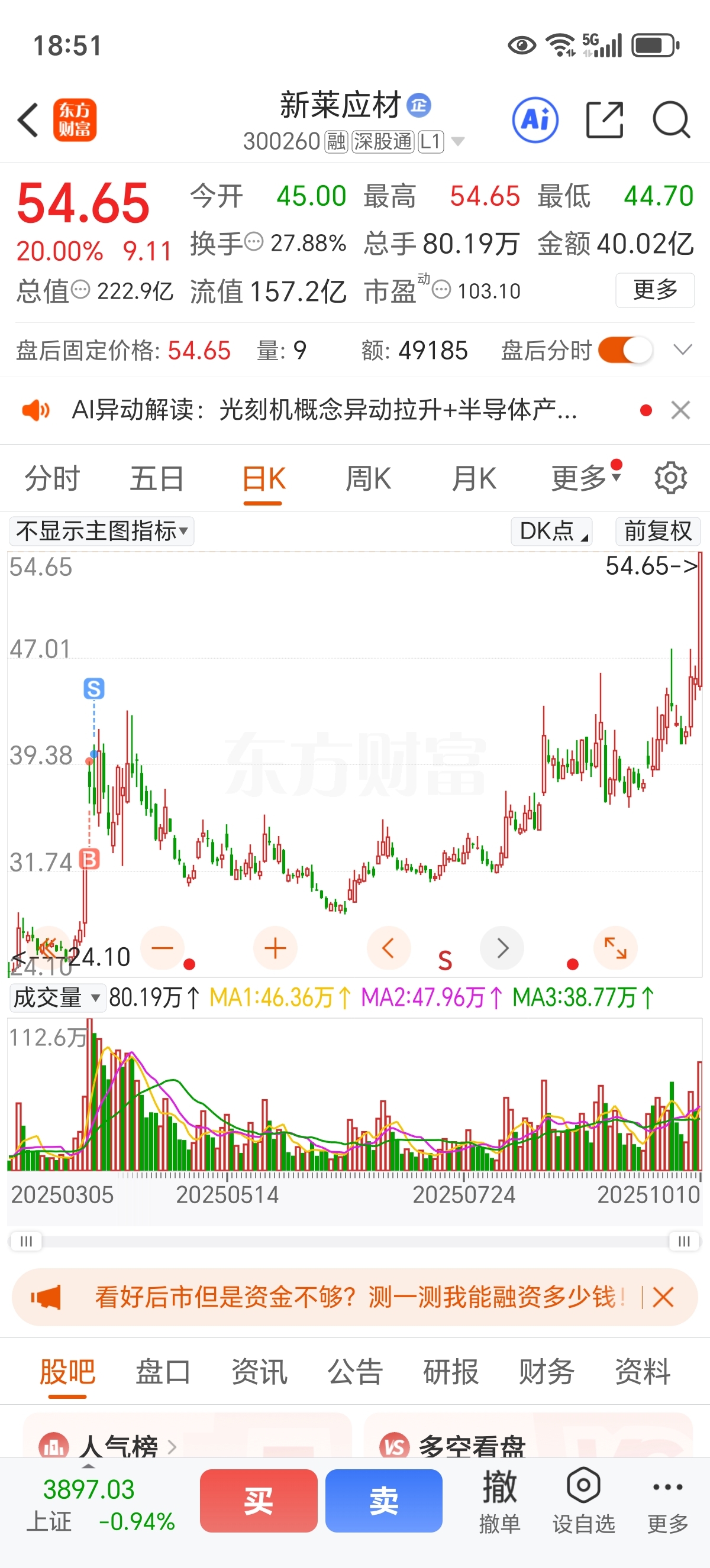$新莱应材(SZ300260)$ 涨停了发出来的消息还能追么
