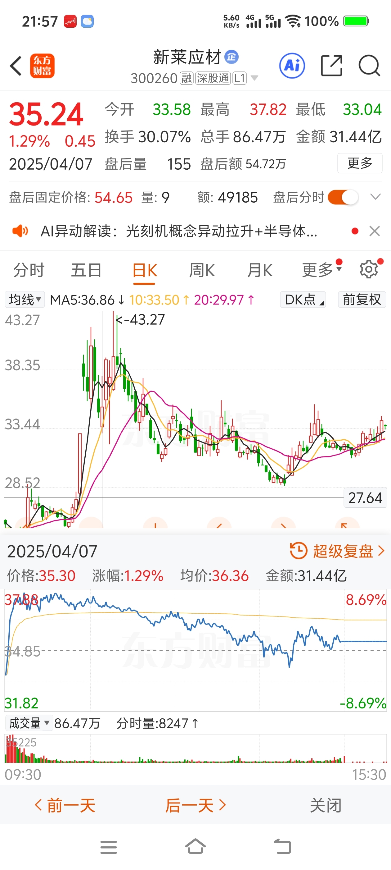 $新莱应材(SZ300260)$ 会不会重演一次4月7日行情???周五买了2千股,在犹豫周一早上拉高要不要卖,希望这次你可以硬气一点。