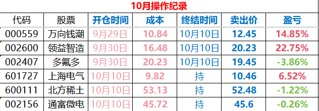 兄弟们,过了一个周末,新的一周重新开始了。无论前面赚了多少、亏了多少,都别放在心上,我上周也有票没拿住,心里懊恼了会儿,但回头想想,炒股哪能次次都对?重要的是从每次操作里学经验,慢慢进步。