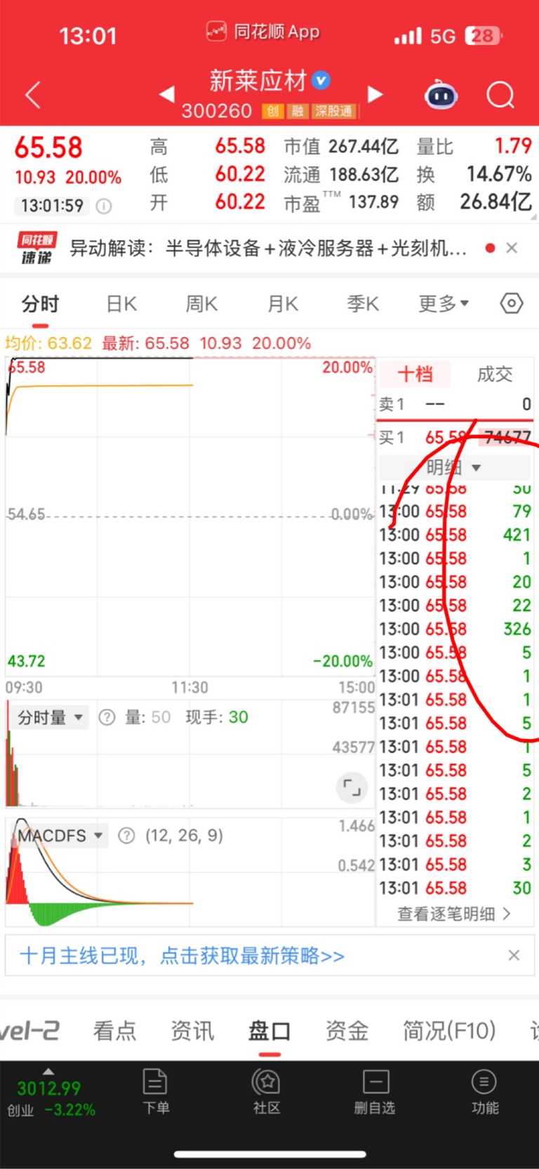 $新莱应材(SZ300260)$ 你们看开盘就有大单再砸,这封单量明天怎么办? 在这市场里能买到一只趋势向上本身就很难得了