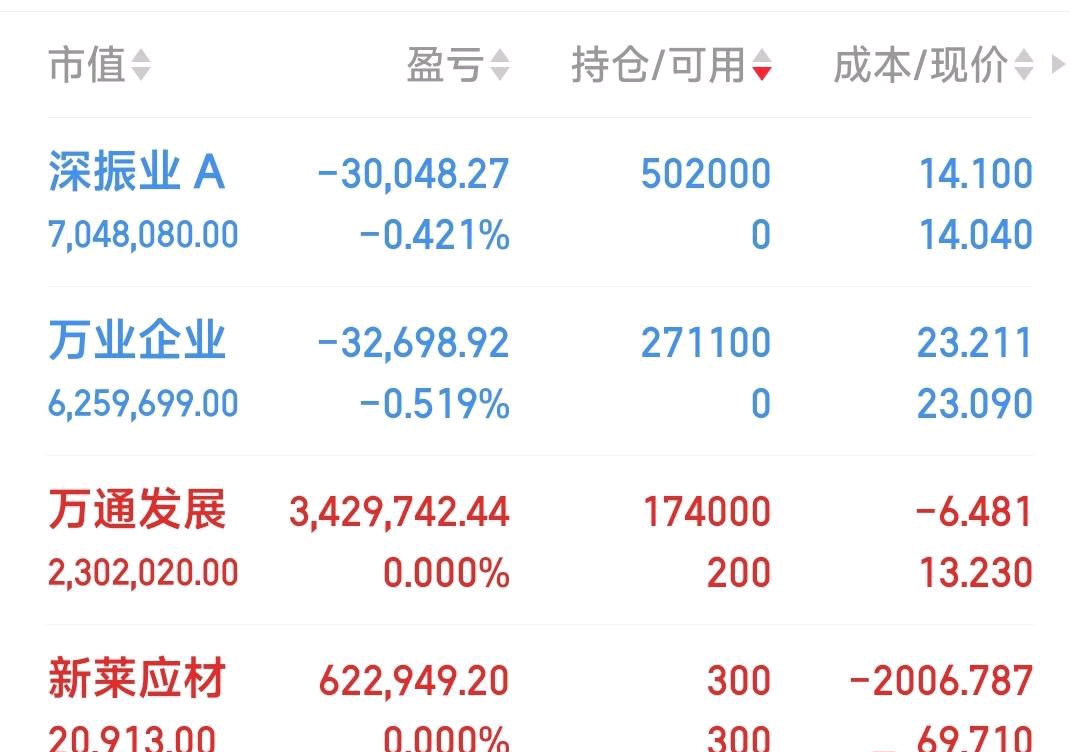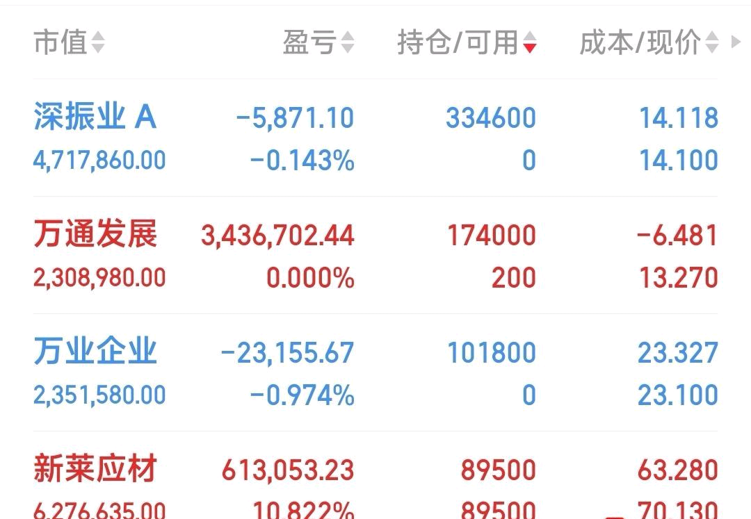 新莱应材吃肉11%见好就收,继续加仓万业企业和深振业A。