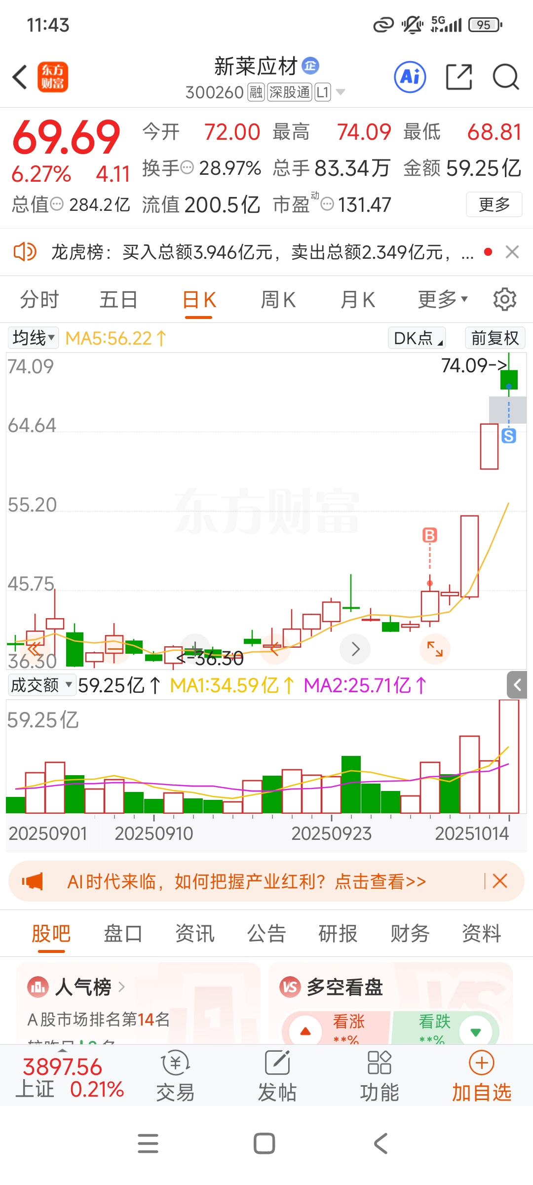 $新莱应材(SZ300260)$ 牛怼天已卖出,感谢主力!