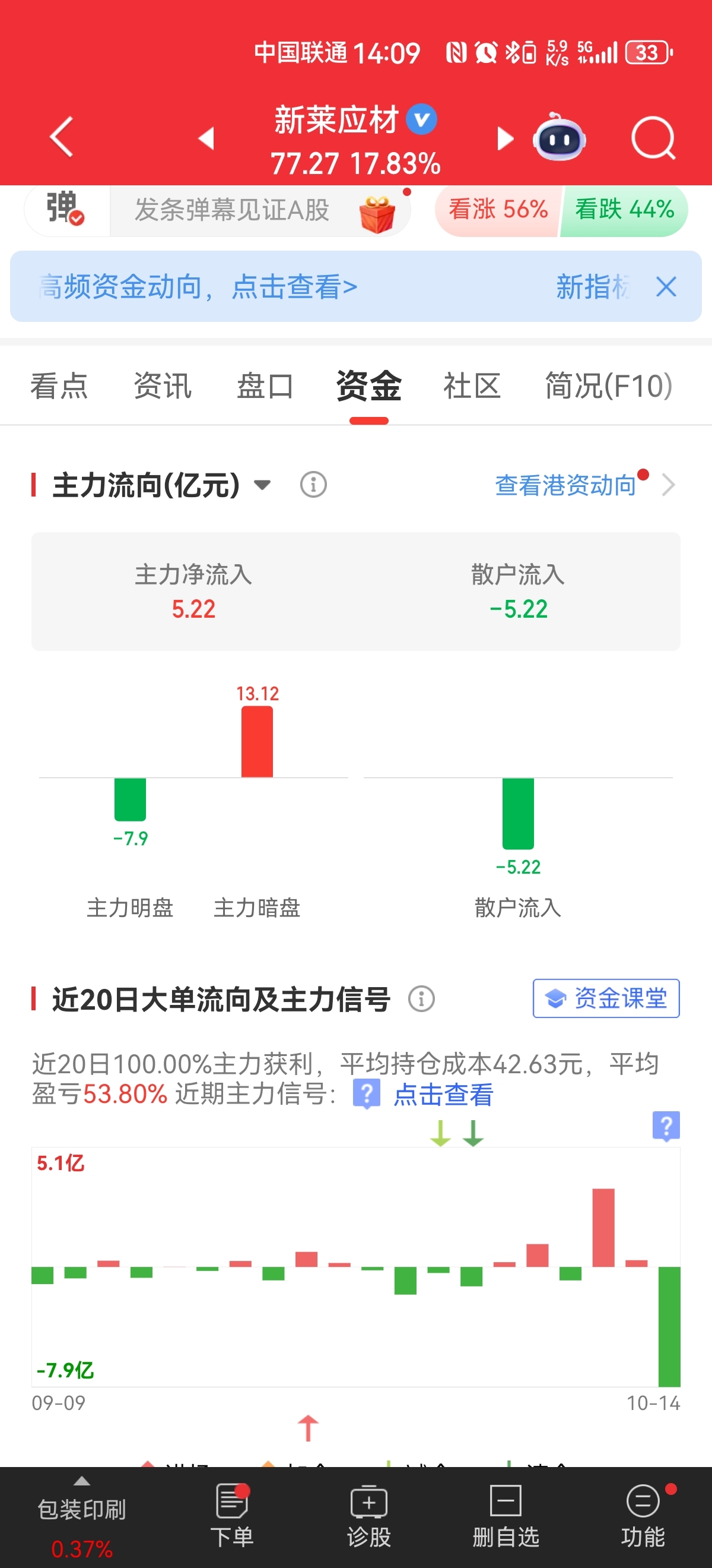 $新莱应材(SZ300260)$ 暗盘流入13个