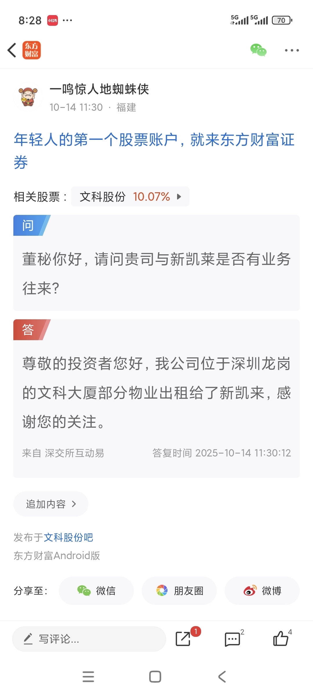 D炸天的新凯莱的房东是文科股份,而我是文科股份的股东,等于我是新凯莱的房东,只要