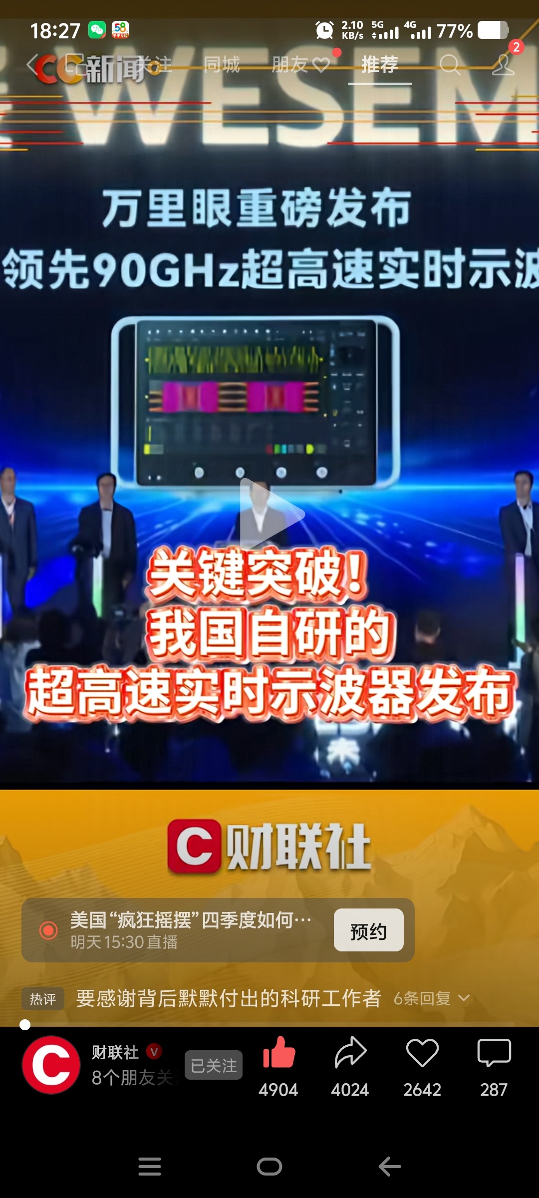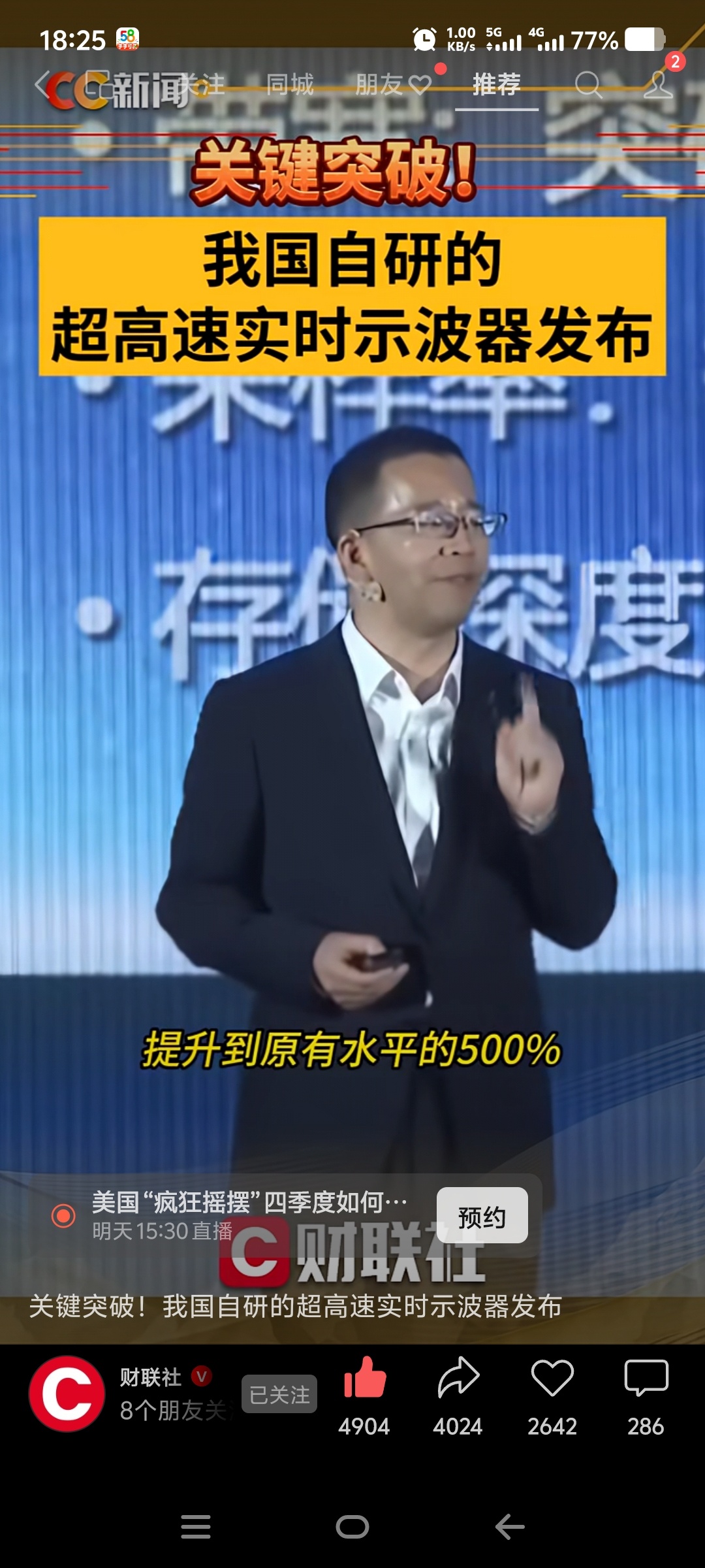 关键突破提升5倍!我国自研的超高速实时示波器发布