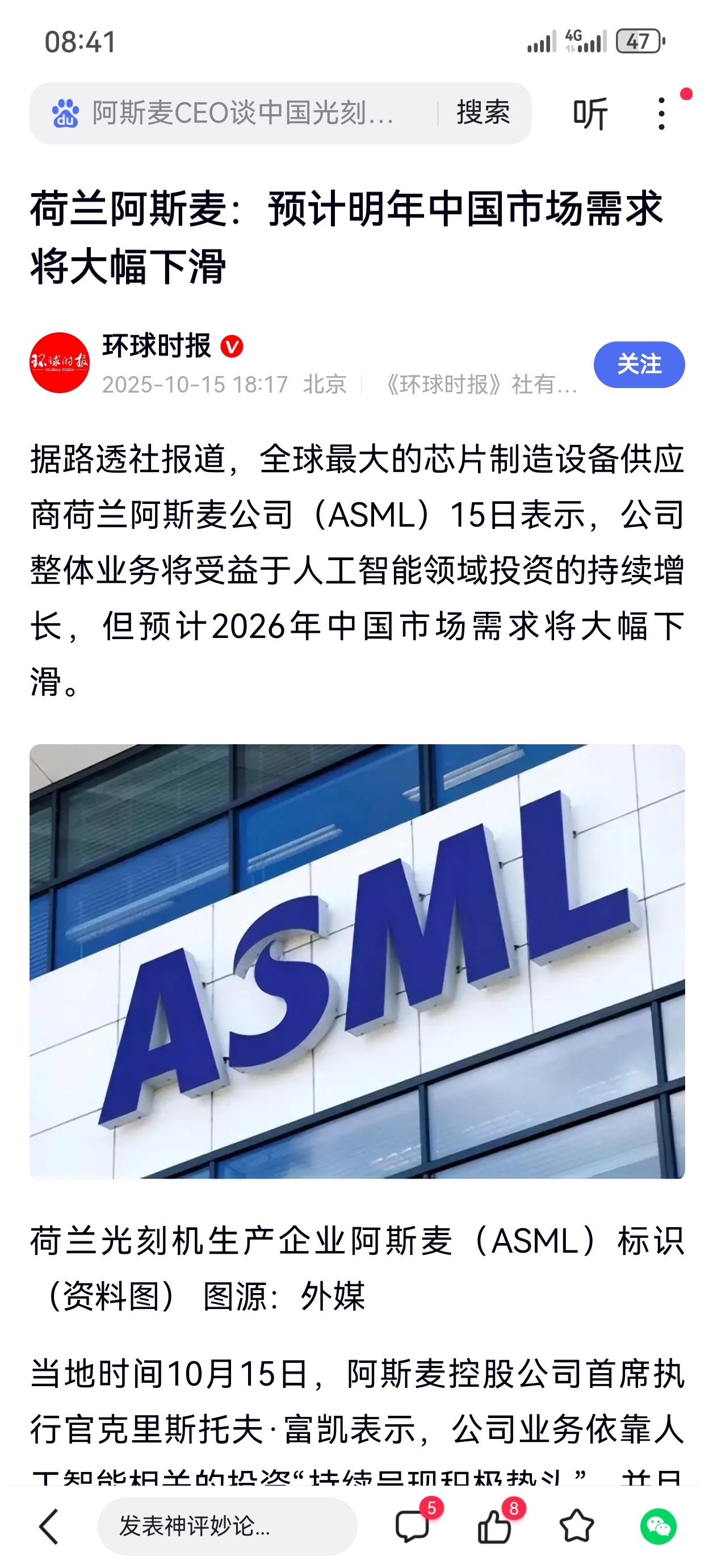 昨晚的阿斯麦财报说明年中国市场他们的销量预计会大幅下滑,你们知道原因吗