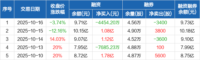 新莱应材:融资净偿还4454.2万元,融资余额9.71亿元(10-16)