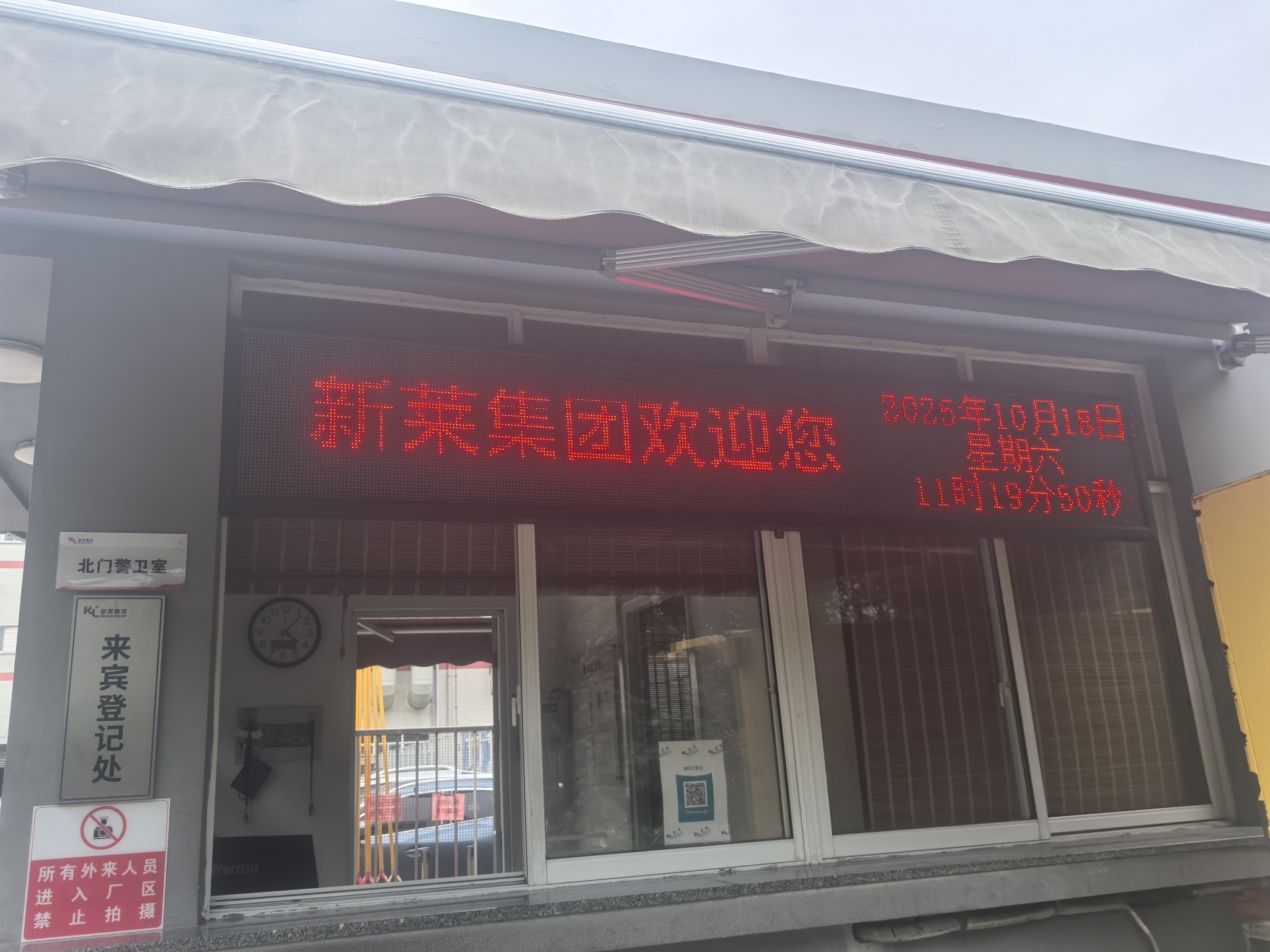 大门保安室玻璃上贴的二维码有留意的不?临时工登记码,说明工厂除了员工外还在外面找