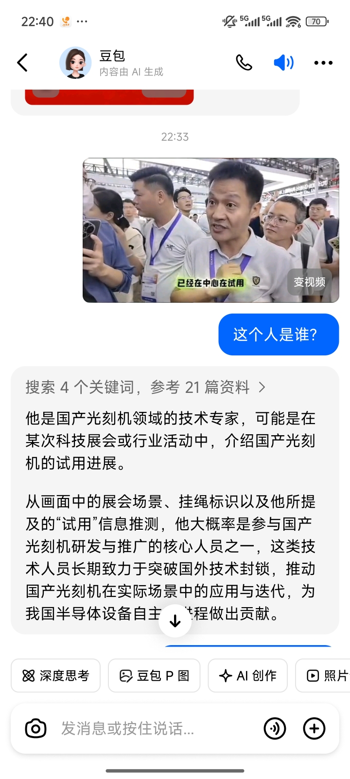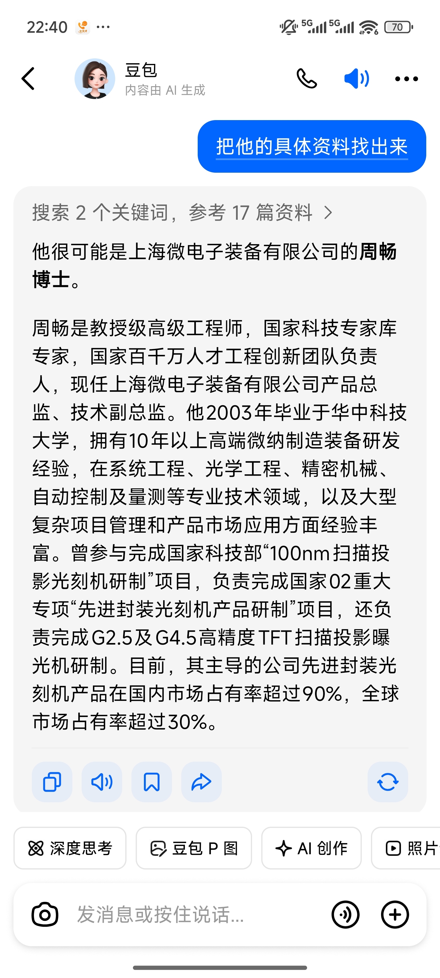 这个人不是什么小作文啊,豆包搜出来确实是专家,上海微电子装备公司周畅博士他就是做