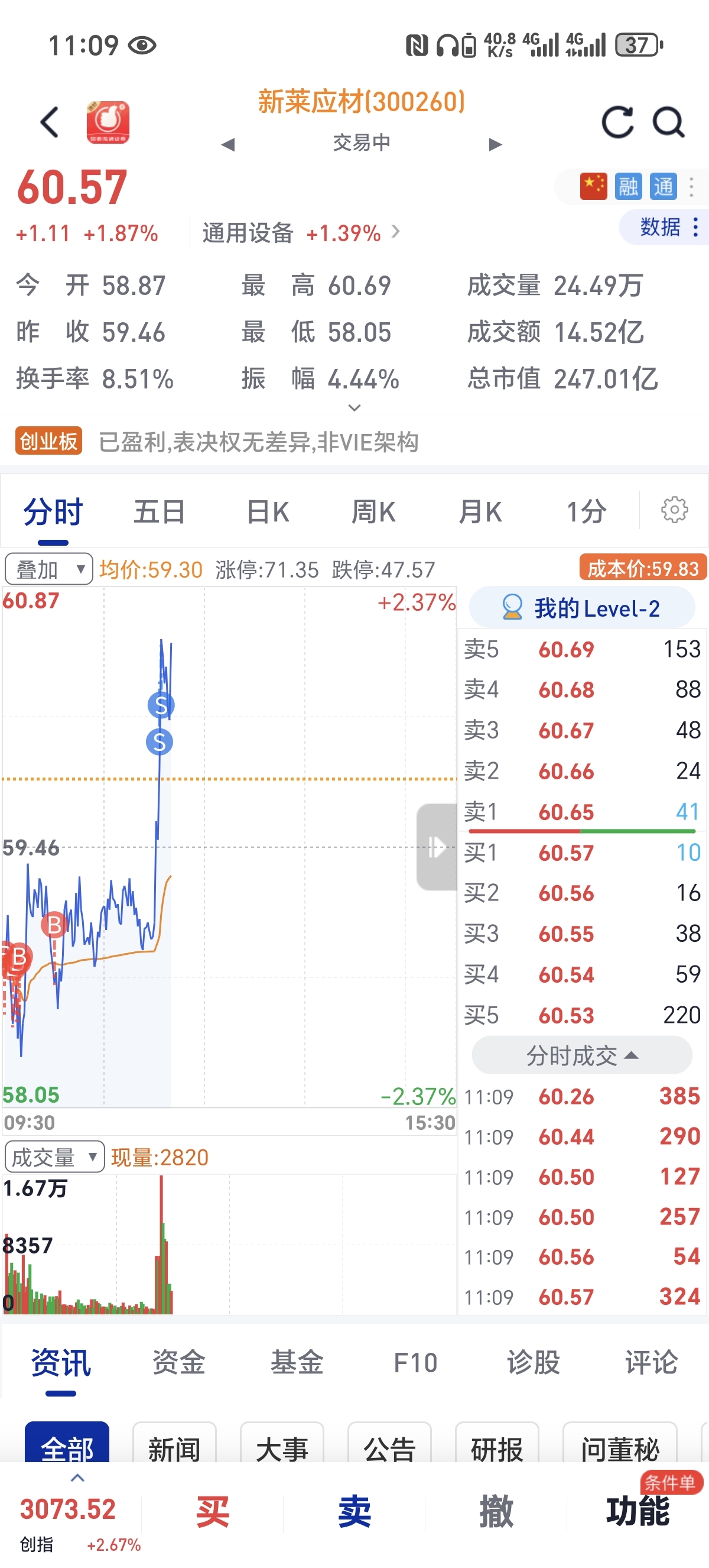 $新莱应材(SZ300260)$ 卖飞了,不过还在还有底盘