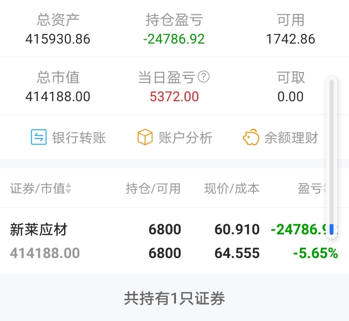 继晶盛机电之后,第二个被套5天亏6个点的持股!!!阻挡了我继续钱进的道路!但是科技股前进的道路不可阻挡,我赚钱的趋势继续向好!估计明后两天能获利出来了!!!