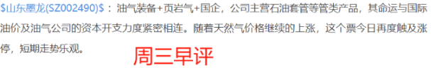 $山东墨龙(SZ002490)$:页岩气+天然气+国企改革+海工装备+股权转让。公司是石油钻采设备制造商,主打油管、套管等产品,号称国内唯一全产业链油气装备供应商。在油气价格高涨的带动下,昨日山东墨龙再度触及涨停板,目前股价走出了4天3板的态势,短期做多氛围浓厚,继续持股。