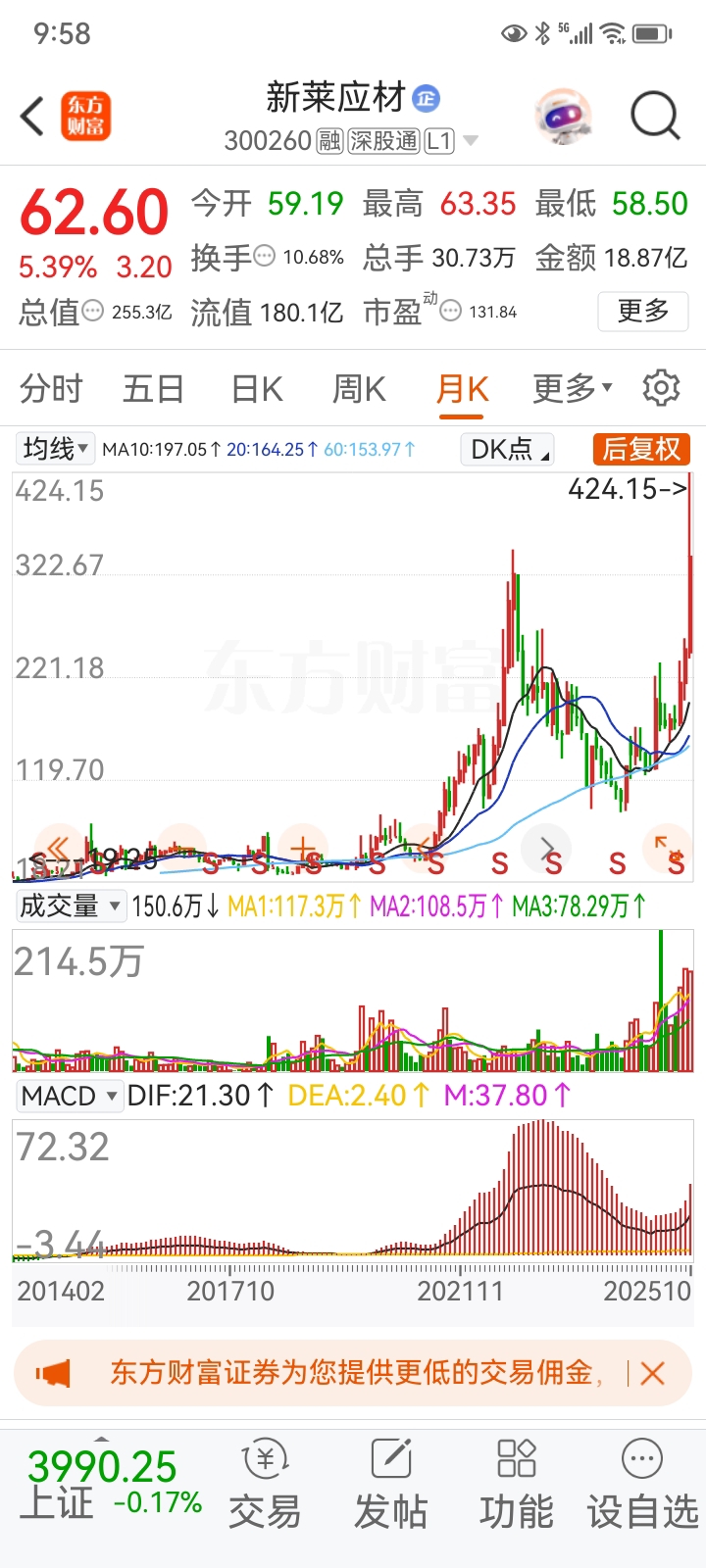 $新莱应材(SZ300260)$ 这是涨了多少倍,可惜我看了5年没动手