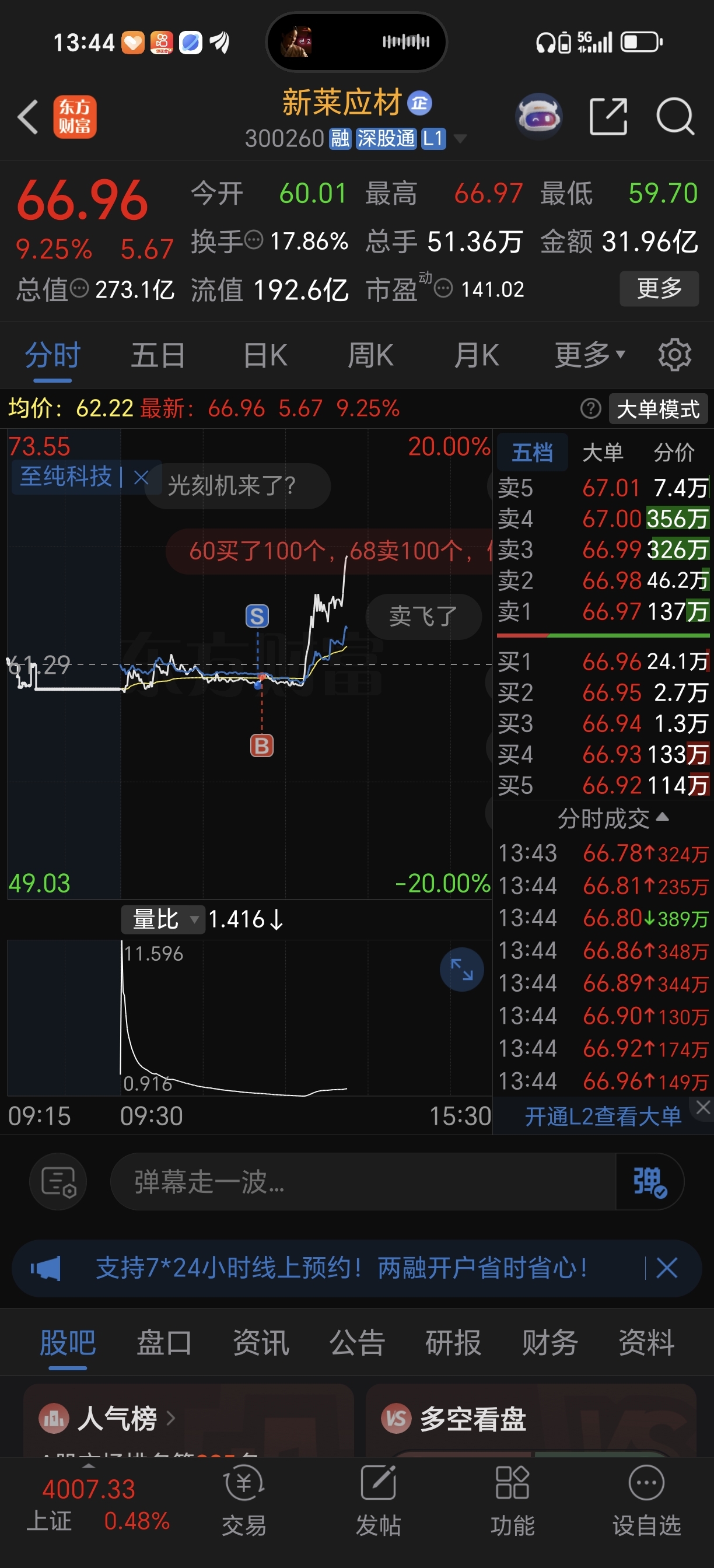 谁懂,卖了一分钟直觉要涨又买回来,差点错过
