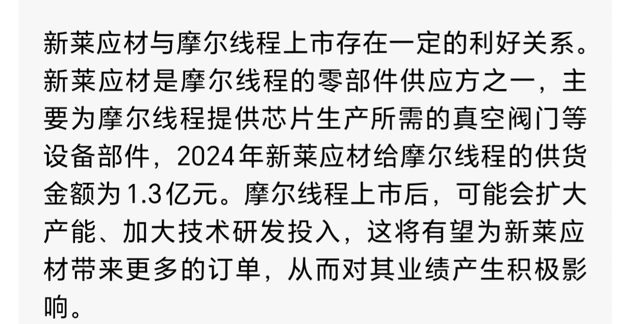 $新莱应材(SZ300260)$ 明天20cm,立贴为证,万人见证,摩尔线程上市利好新莱应材。订单将大大增加。