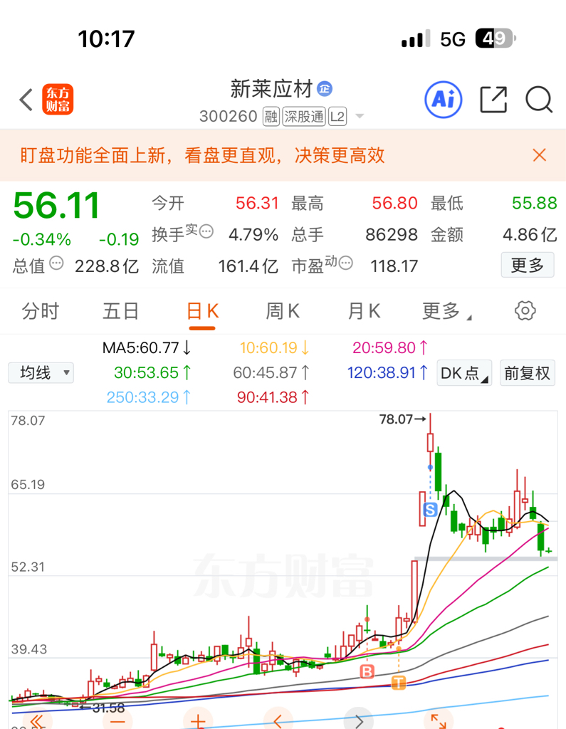 $新莱应材(SZ300260)$ 五十建仓,等的着急