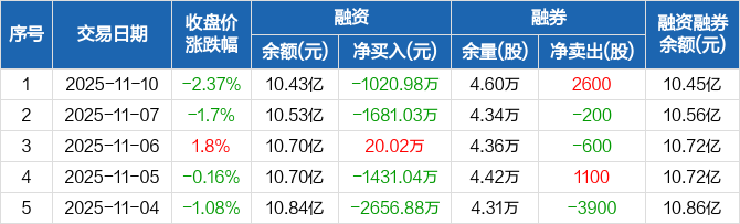 新莱应材:融资净偿还1020.98万元,融资余额10.43亿元(11-10)