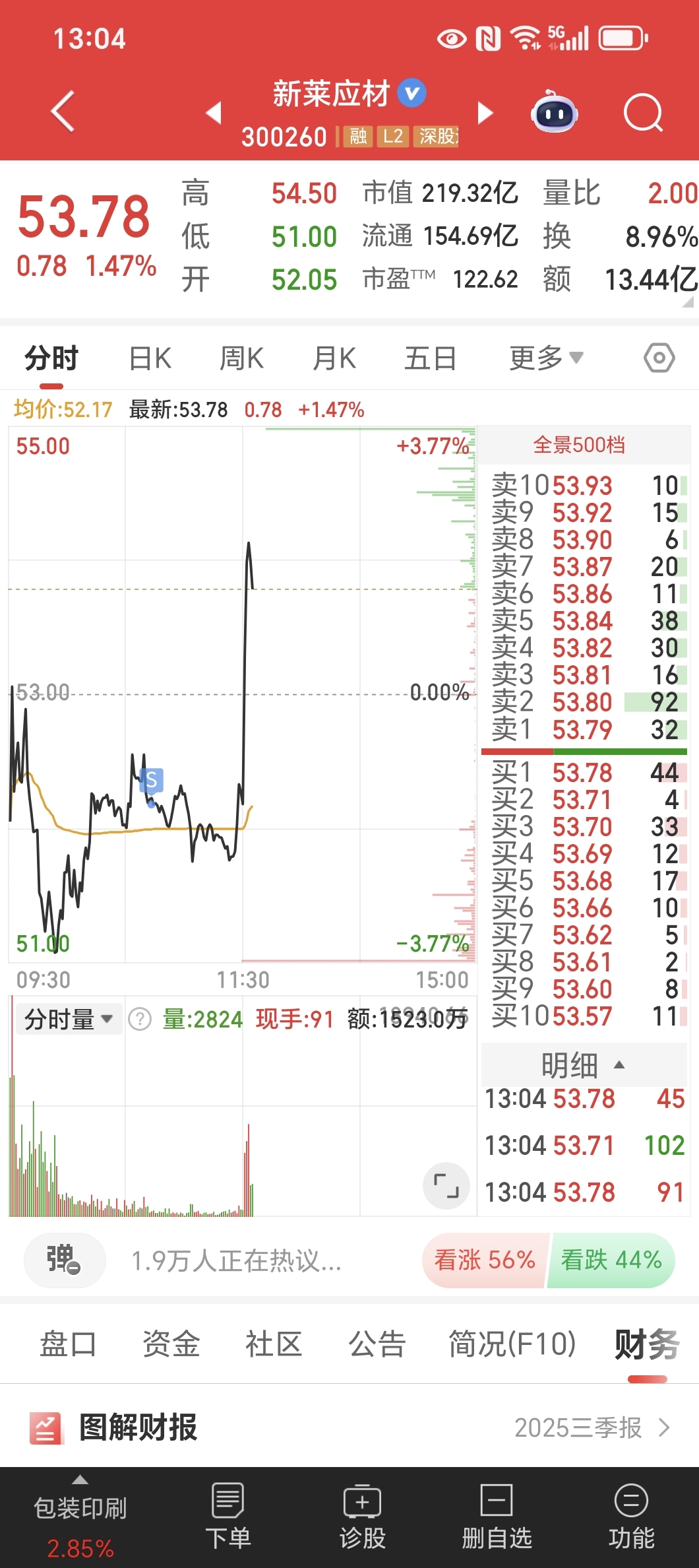 $新莱应材(SZ300260)$ 割肉了,主力你要涨就涨吧