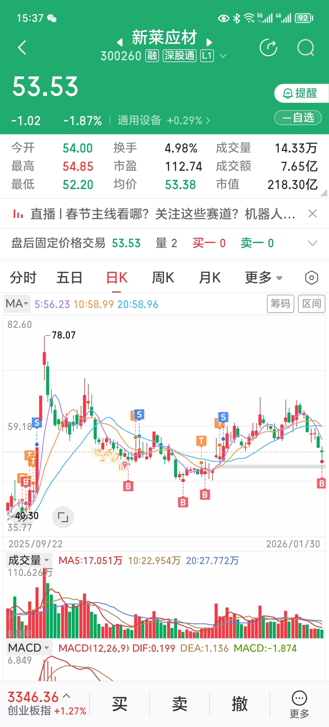 $新莱应材(SZ300260)$ 我一买就涨,今天全仓买入,恭喜我吧