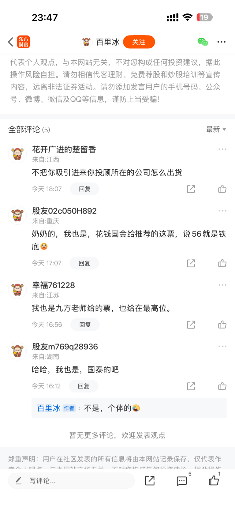 郑重声明:用户在财富号/股吧/博客等社区发表的所有信息(包括但不限于文字、视频、音频、数据及图表)仅代表个人观点,与本网站立场无关,不对您构成任何投资建议,据此操作风险自担。请勿相信代客理财、免费荐股和炒股培训等宣传内容,远离非法证券活动。请勿添加发言用户的手机号码、公众号、微博、微信及QQ等信息,谨防上当受骗!