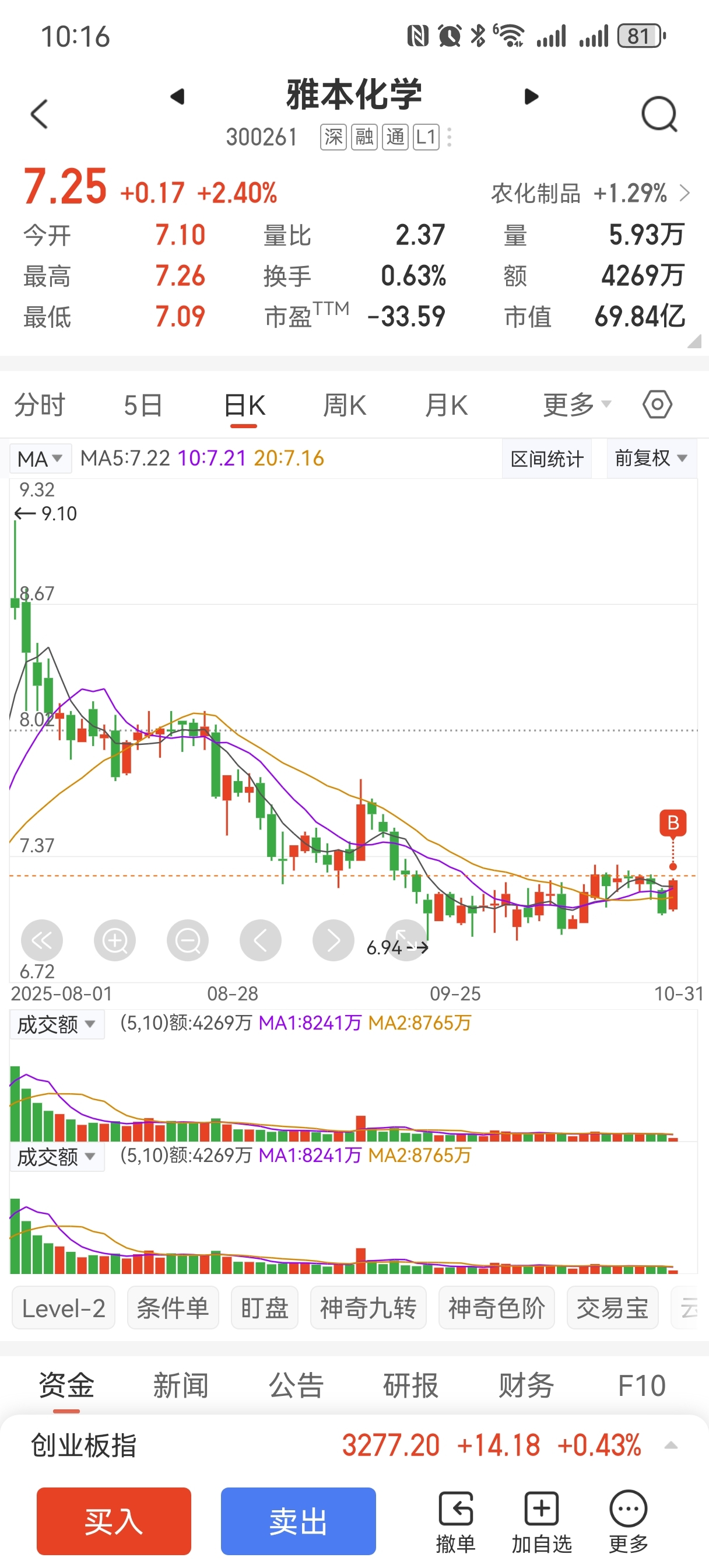 $雅本化学(SZ300261)$ 开仓雅本化学,中线单
