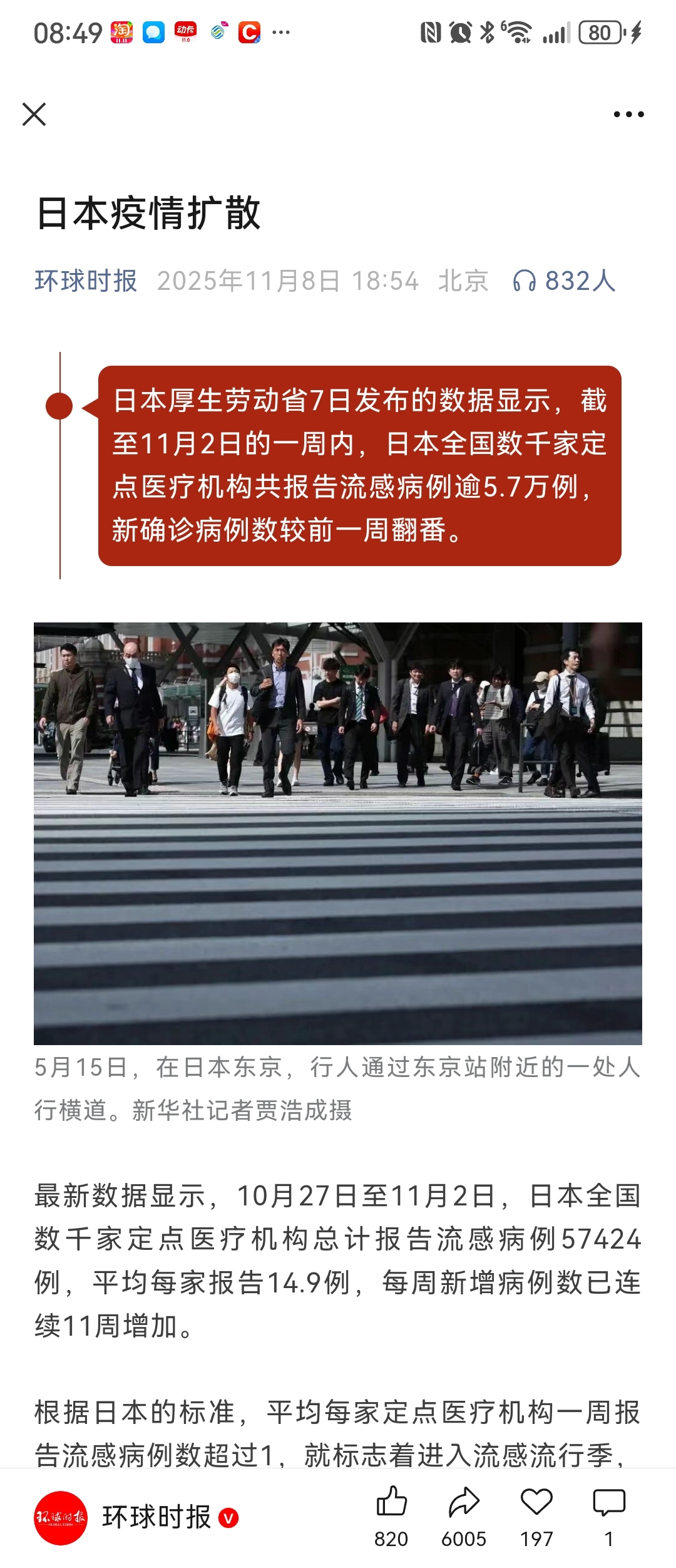 日本流感疫情扩散