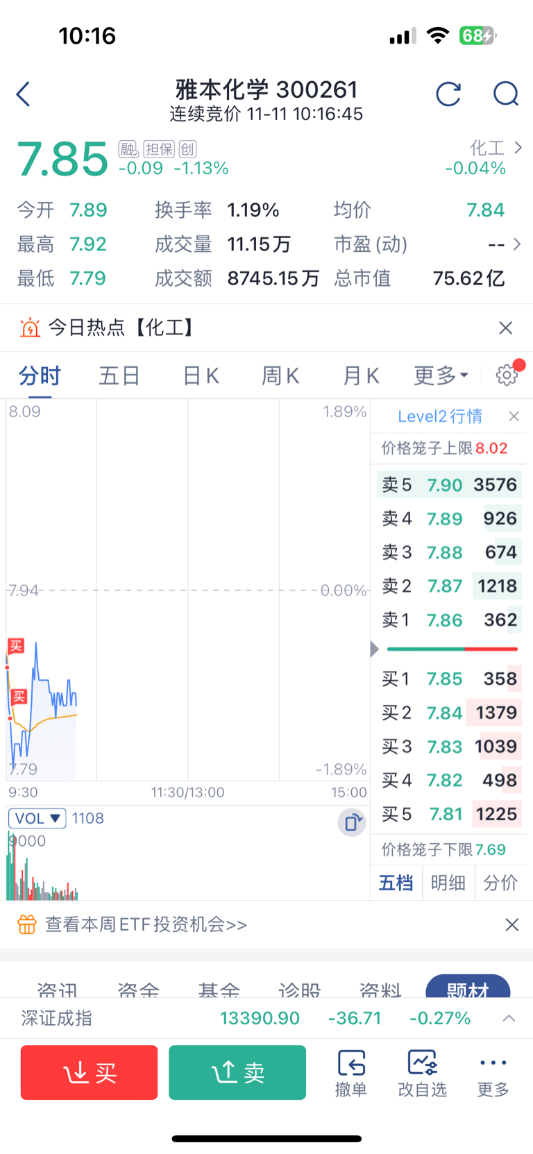 $雅本化学(SZ300261)$ 没有大波动的话,今天下班了