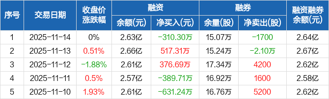 雅本化学:融资净偿还310.3万元,融资余额2.63亿元(11-14)