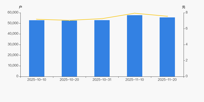 2025年10月10日至今,公司股东户数有所增长,区间涨幅为5.01%。2025年10月10日至2025年11月20日区间股价上涨5.29%。