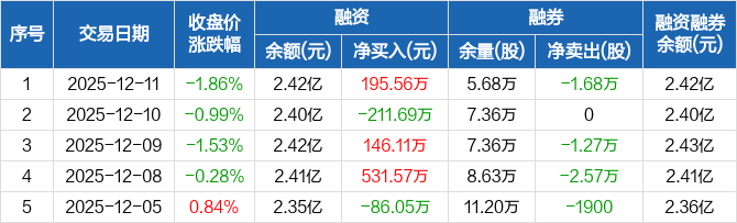 雅本化学:融资净买入195.56万元,融资余额2.42亿元(12-11)