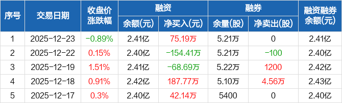 雅本化学:融资净买入75.19万元,融资余额2.41亿元(12-23)