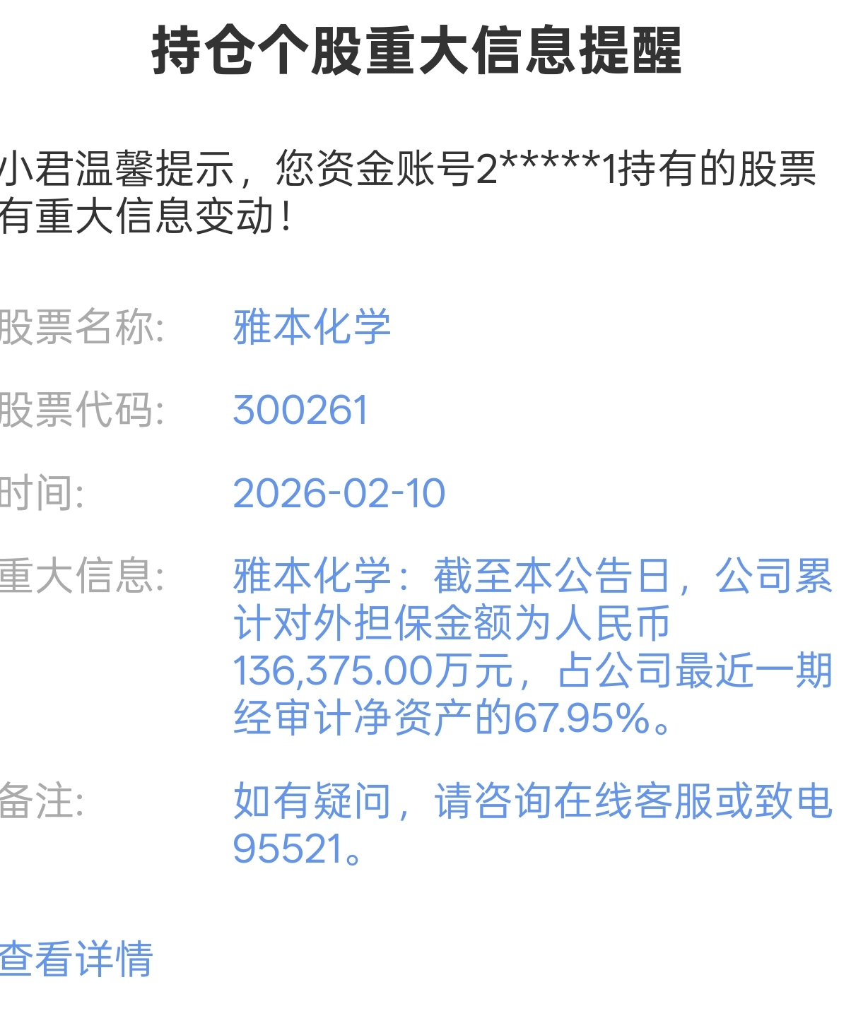 $雅本化学(SZ300261)$ 对外担保比例百分之六十几