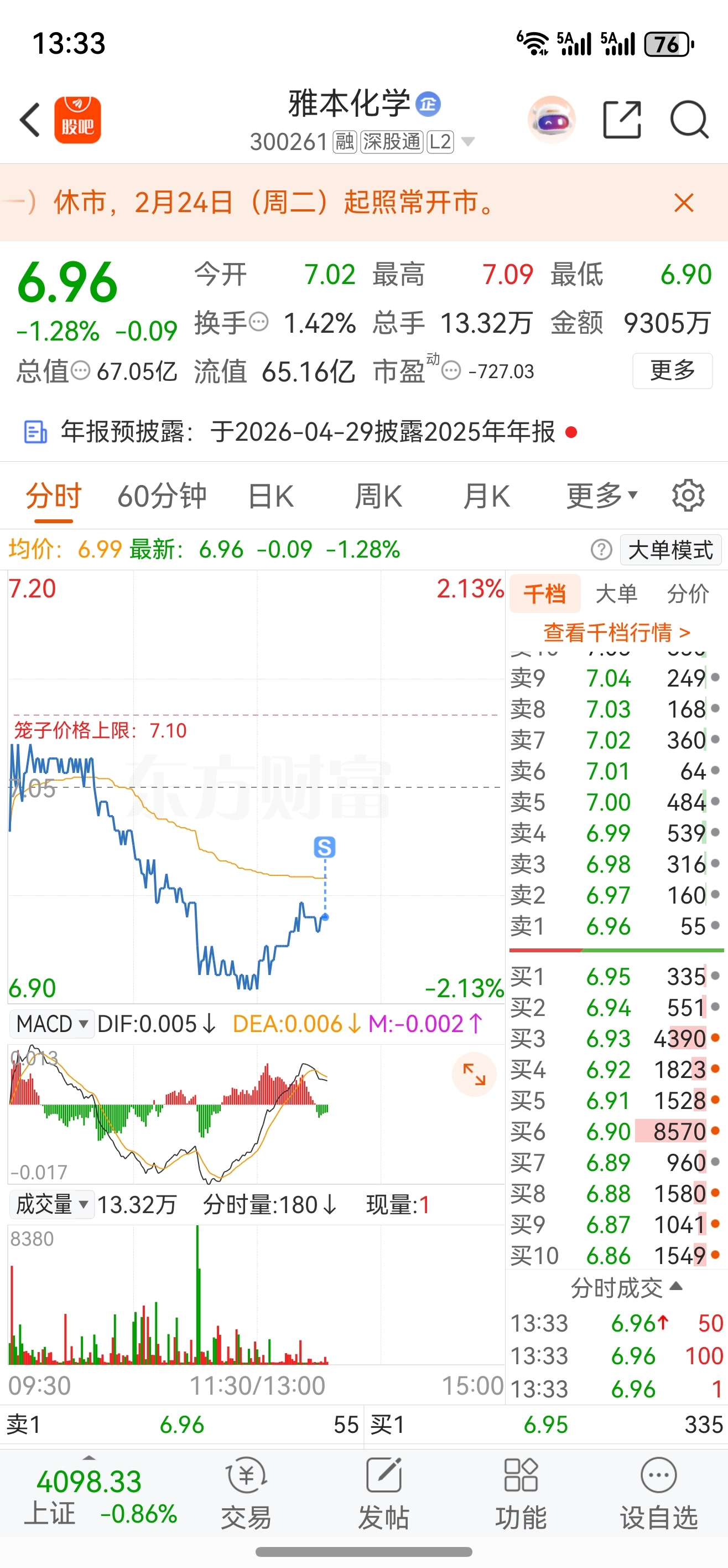 $雅本化学(SZ300261)$ 割了,勾逼庄可以涨了