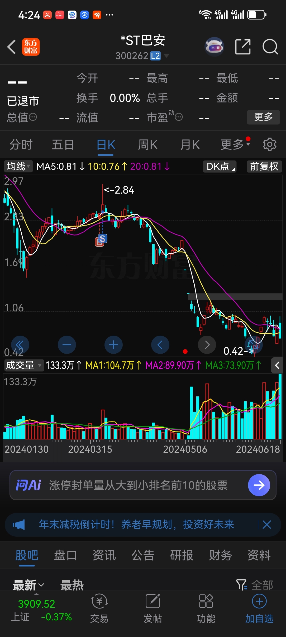 温馨提示: 1.根据《证券法》规定,禁止编造、传播虚假信息或者误导性信息,扰乱证券市场;2.用户在本社区发表的所有资料、言论等仅代表个人观点,与本网站立场无关,不对您构成任何投资建议。用户应基于自己的独立判断,自行决定证券投资并承担相应风险。《东方财富社区管理规定》
