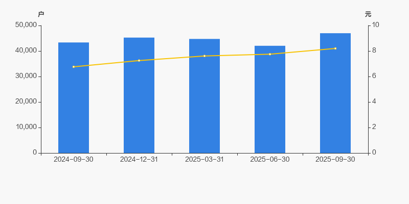 2024年9月30日至今,公司股东户数有所增长,区间涨幅为8.37%。2024年9月30日至2025年9月30日区间股价上涨21.27%。