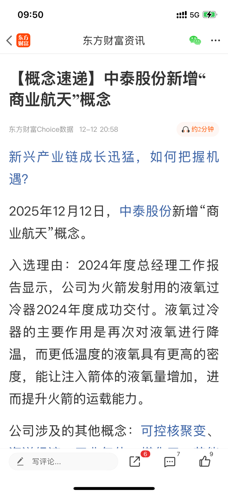 300435中泰,当日新增商业航天板块,当日跳空大涨8.73%