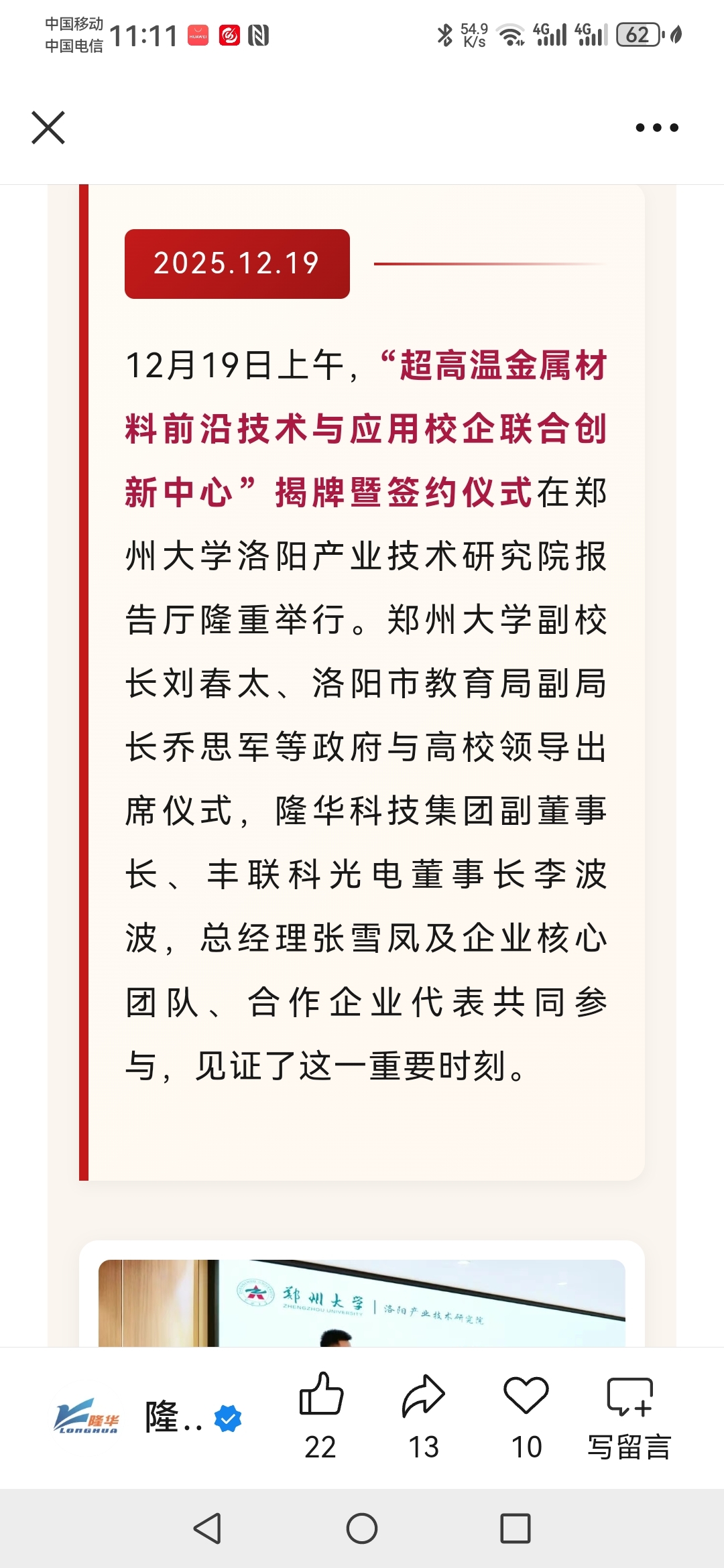 郑州大学的部分科研成果将逐步转向隆华科技(生产领域),实属一大利好。