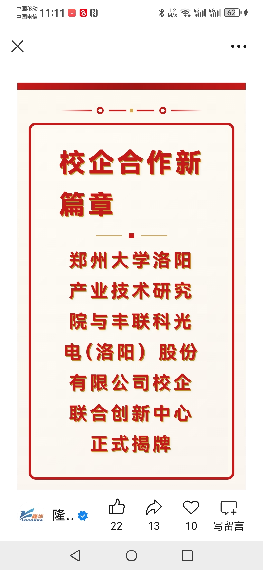 郑州大学洛阳产业技术研究院与丰联科光电(洛阳)股份有限公司校企联合创新中心正式揭牌