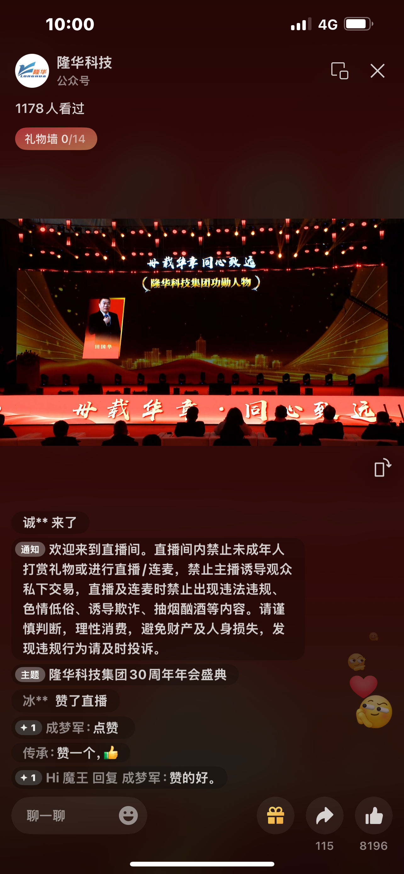隆华科技今天30周年年会,辉煌的成就,光明的未来,请直播观看
